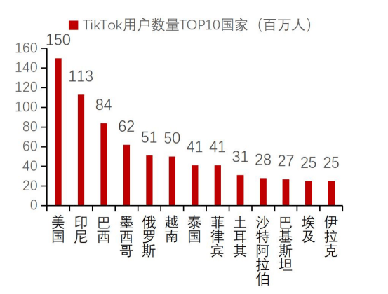 Tiktok用户渗透率及用户数量top10国家